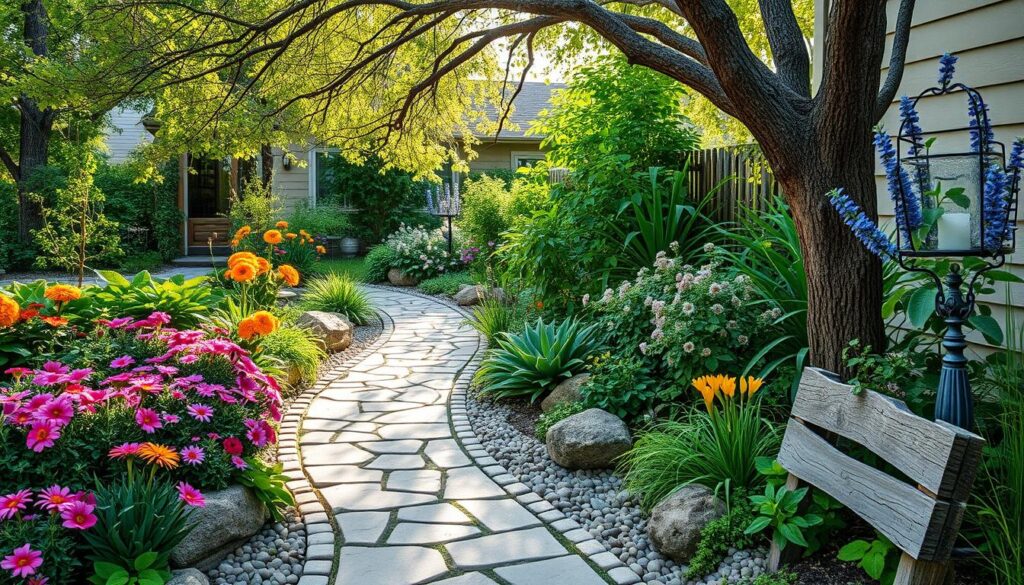 Improving your backyard starts with a well-designed garden pathway. You can choose from stepping stones, gravel trails, or wooden walkways. Each option can turn your outdoor space into a welcoming oasis. Let’s look at the key steps to make your garden pathway a reality.